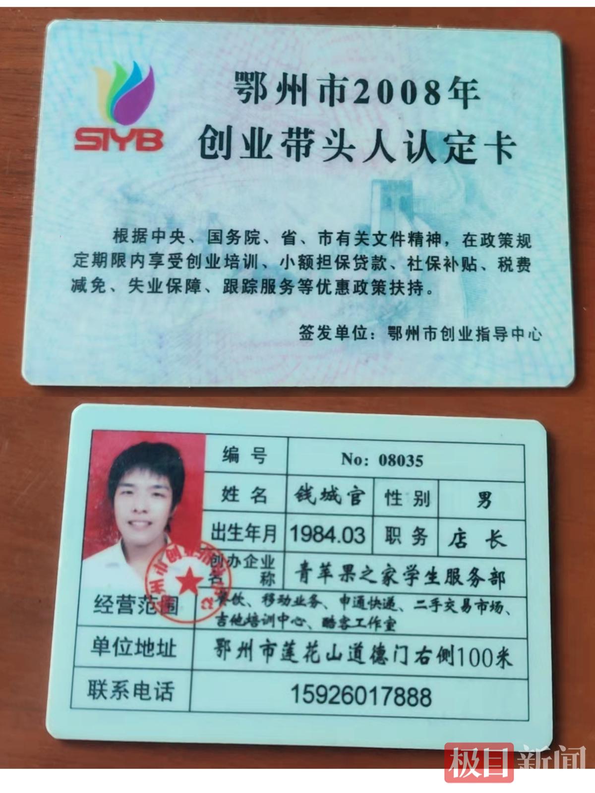 钱城官的创业带头人认定卡