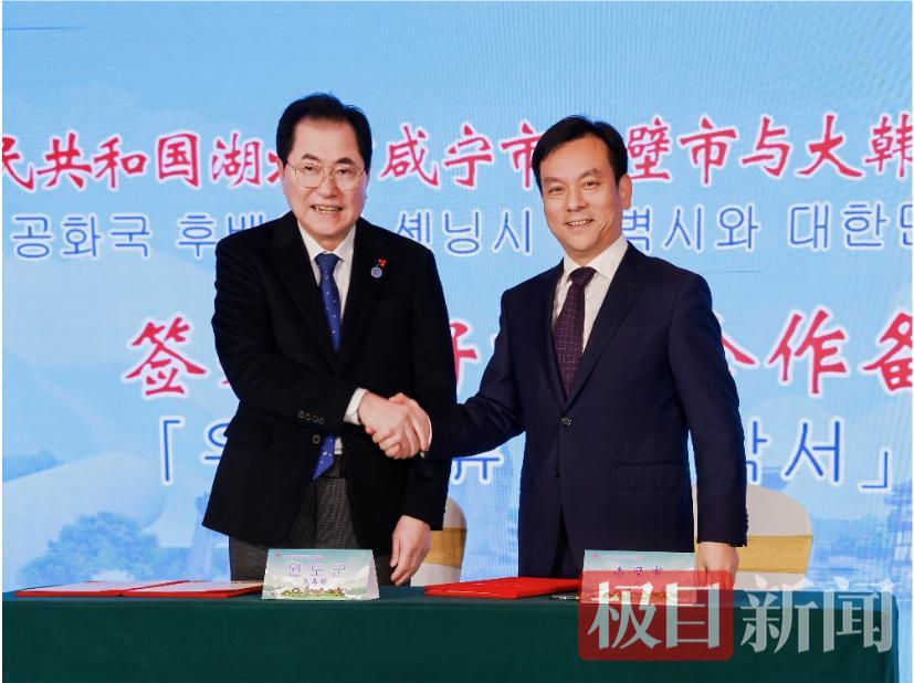 欢迎仪式上,董方平与申宇徹互赠纪念礼品,承载着两地人民的深厚情谊与美好期许。随后,彭光平与申宇徹共同签署《赤壁市与莞岛郡友好交流合作备忘录》,标志着两地正式建立友好交流合作关系,开启双边全方位、多层次合作的崭新篇章。活动中,湖北万通缘国际旅游发展有限公司、羊楼洞茶业股份有限公司还分别与莞岛郡签订文旅、茶产业合作备忘录,进一步拓宽合作领域,助力两地特色产业协同发展、文旅资源互促共享。