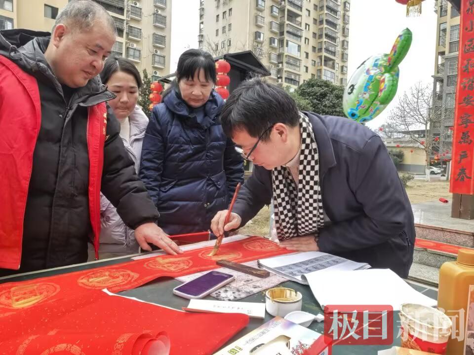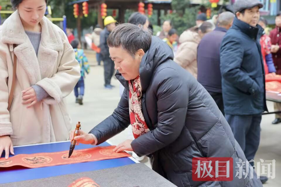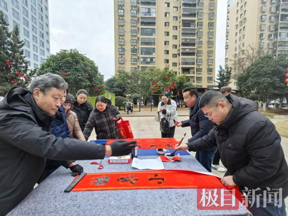 据悉,2025年12月以来,咸安区文联共组织30场义写春联进乡村、进企业、进社区、进机关、进学校活动,将2万副春联和“福”字免费送到寻常百姓家。(图片由通讯员提供)