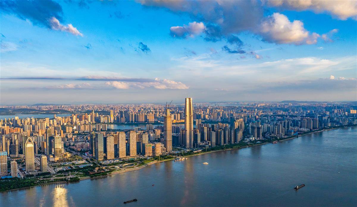 2025年8月26日,航拍高楼林立现代化的武汉武昌城区。