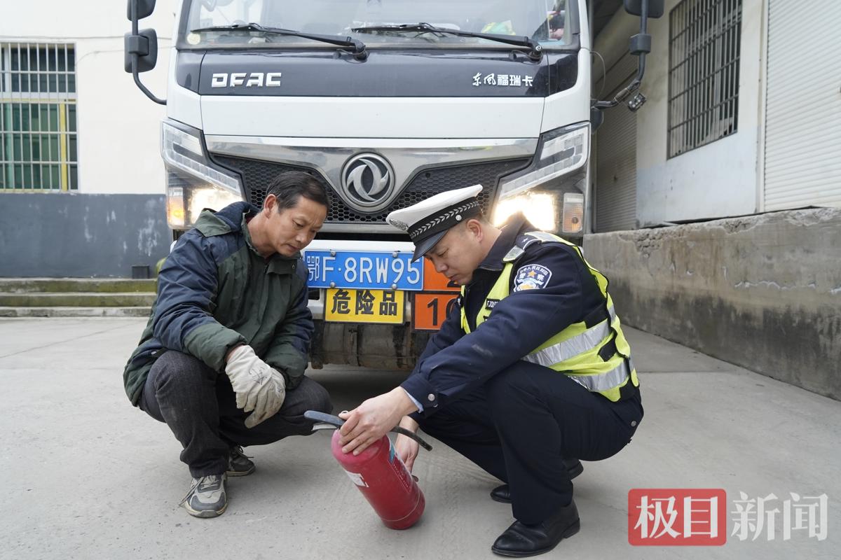 民警检查车辆内放置的灭火器(通讯员 供图)