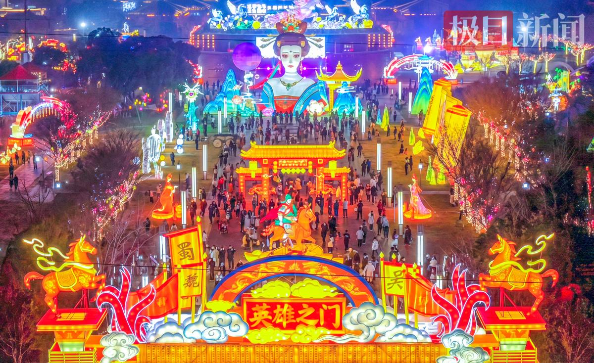 此外,园区还设置了全民欢歌、有奖灯谜、三国幸运大转盘、草船借箭等互动游乐项目,让游客沉浸式体验新春乐趣。