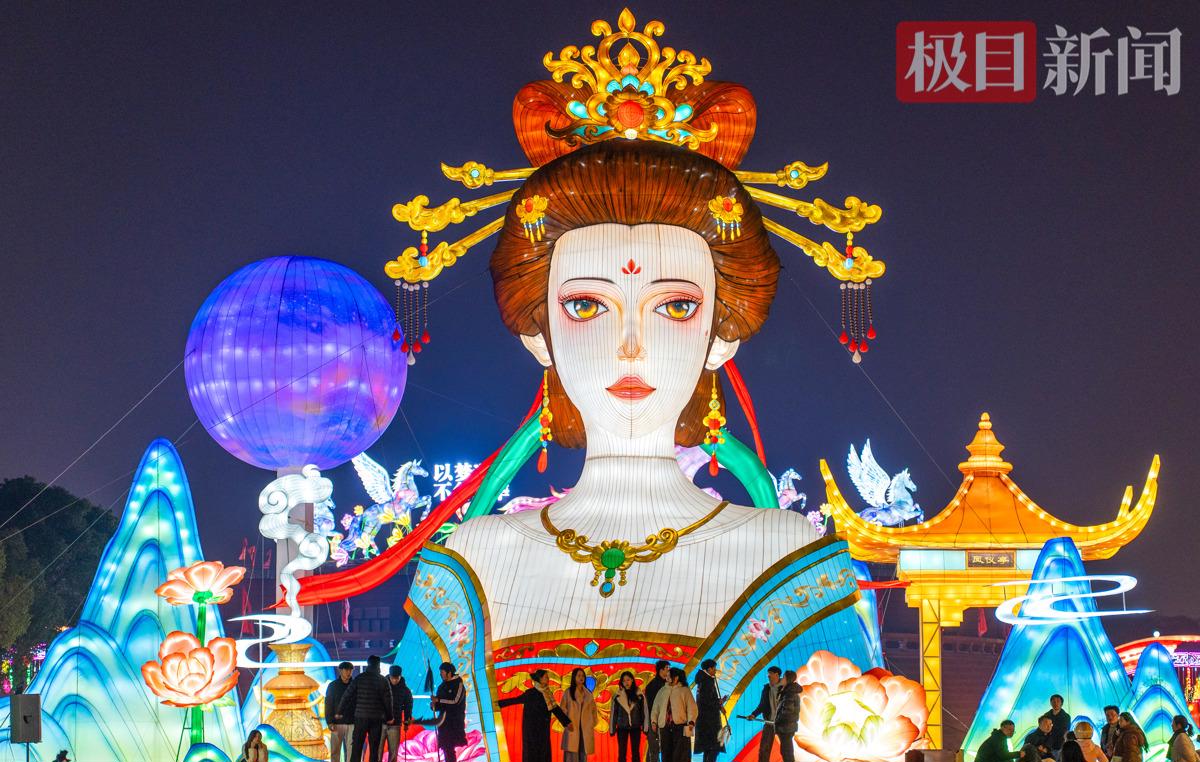15米高的“貂蝉拜月”主灯组相当于5层楼高,成为荆州春节浪漫的打卡地标。(受访者供图)