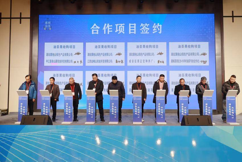 签约环节,通城县两家重点龙头企业——湖北黄袍山绿色产品有限公司与湖北省阁壁湖绿色产品有限公司,分别与湖南省平江县、江西省修水县及湖北省内多家专业合作社、销售企业签署了油茶果收购协议与茶油销售协议,初步构建起覆盖种植、加工、销售的跨区域产业链协作网络。