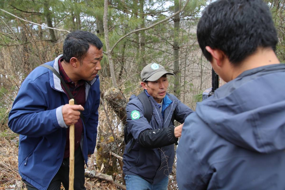 下午,三人查看了林间的红外相机,镜头里记录着黄麂、黑熊的身影,二十多台相机散布林间,默默留存着野生动物的活动轨迹。“每星期取一次数据上报,再重新固定好”谭明宽小心翼翼地调试相机,“这是它们的家,我们只是客人,知道它们好好活着就好。”
