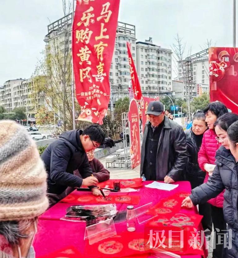 活动现场分为三大主题区域:“乐购黄州”年货优品展销区内,一个个统一形象的展位整齐排列,家电、家具、建材等商品琳琅满目,不少市民驻足咨询,商家热情介绍“新春特惠”“以旧换新”等优惠活动;“喜气盈门”新春文化体验区里,糖画、剪纸等非遗展示吸引了许多家庭参与,写春联、猜灯谜等传统年俗活动也排起了小长队,墨香与欢笑交织,洋溢着浓浓的年味;“马上有喜”欢乐互动打卡区则成为年轻人与孩子们的乐园,以马年为主题的合影墙、祈福树前,不少市民拍照留念,幸运转盘前不时传来阵阵喝彩。