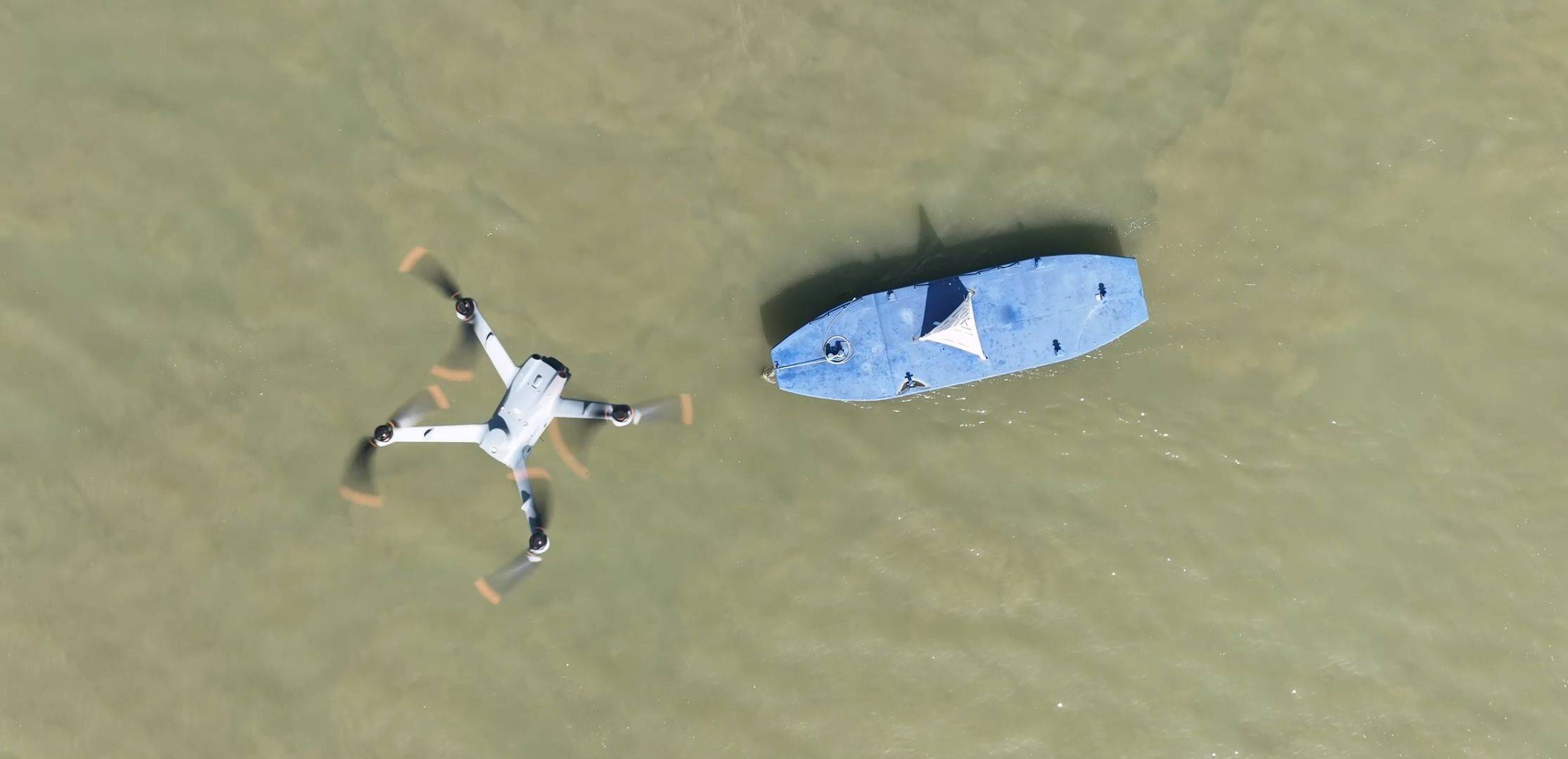 江面巡逻的无人机。 记者高文举 摄