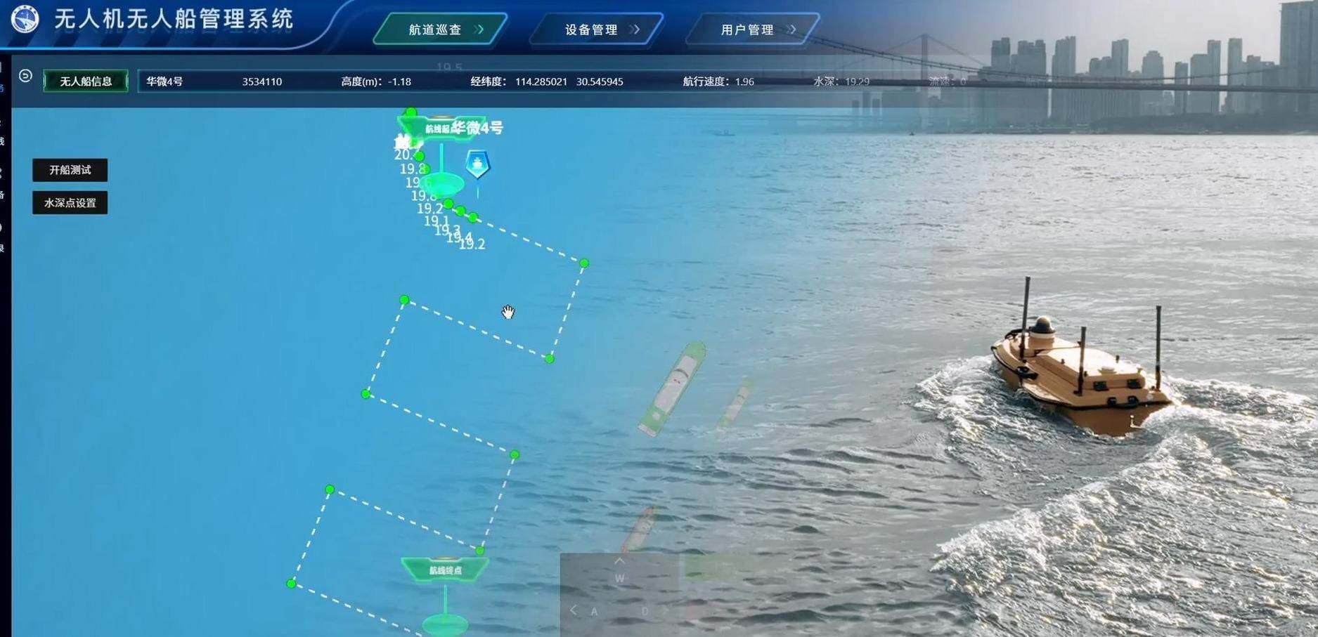 “智慧航道远不止于无人机”,郭尧强调,“智慧航道运用AI视频轮询、无人船测量等技术,构建‘水、陆、空’一体化监测网络,实现全方位感知。”
