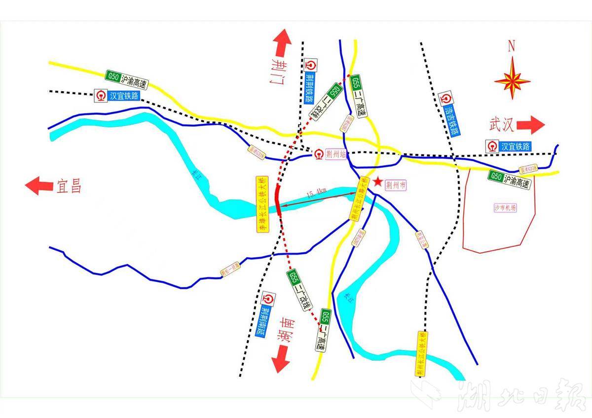 凛冽寒风中,站在荆州市荆州区江边,只见两座门式主塔巍然屹立于江边,作为未来大桥的“脊梁”,它们将承载起全长1723米、主跨达1120米的桥面。届时,汽车、高铁与城市车流将在约50米高空并行穿梭,蔚为壮观。