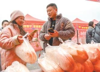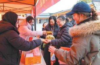 “郑场豆豉伴手礼来瞧瞧。”“快来尝一下纯手工黑芝麻糖,本土富硒芝麻制作。”……顺着吆喝声望去,年货集市上,乡土特色年货琳琅满目,35个摊位亮相展销地道美食。备受欢迎的枕头馒头个头长、重量足,由老面发酵,人手一袋,成为标配,更有游客下单10个带走。