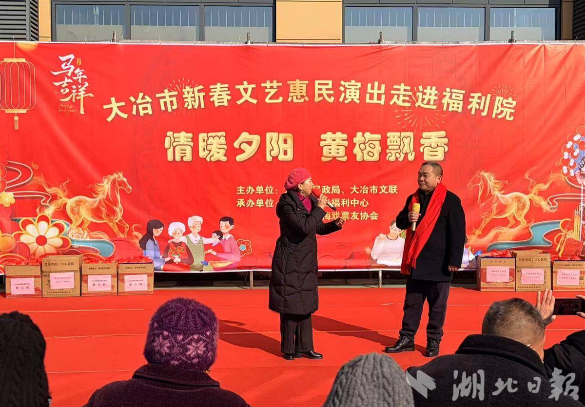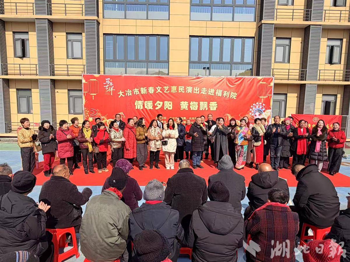 湖北日报讯(记者李光正、通讯员田莉、柯怡然)2月8日,大冶市中心福利院操场上丝竹悠扬,掌声阵阵,大冶市黄梅戏票友协会的会员们带着精心准备的经典剧目来到福利院,为院民们带来了一场精彩纷呈的戏曲慰问演出。