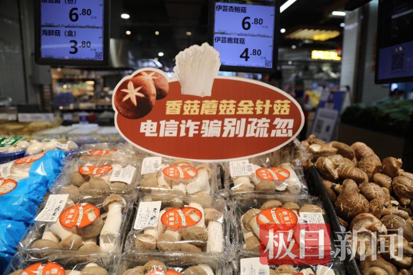 “白菜芹菜油麦菜,莫被骗子当韭菜”“香菇蘑菇金针菇,电信诈骗别疏忽……”2月6日,在崇阳县金泰广场商超内,一个个朗朗上口、幽默诙谐的反诈宣传标语,摆放在琳琅满目的货架旁,吸引不少顾客驻足细看。这是崇阳县公安局精心打造的“反诈主题超市”,给市民送上的一份特别的“平安年货”。