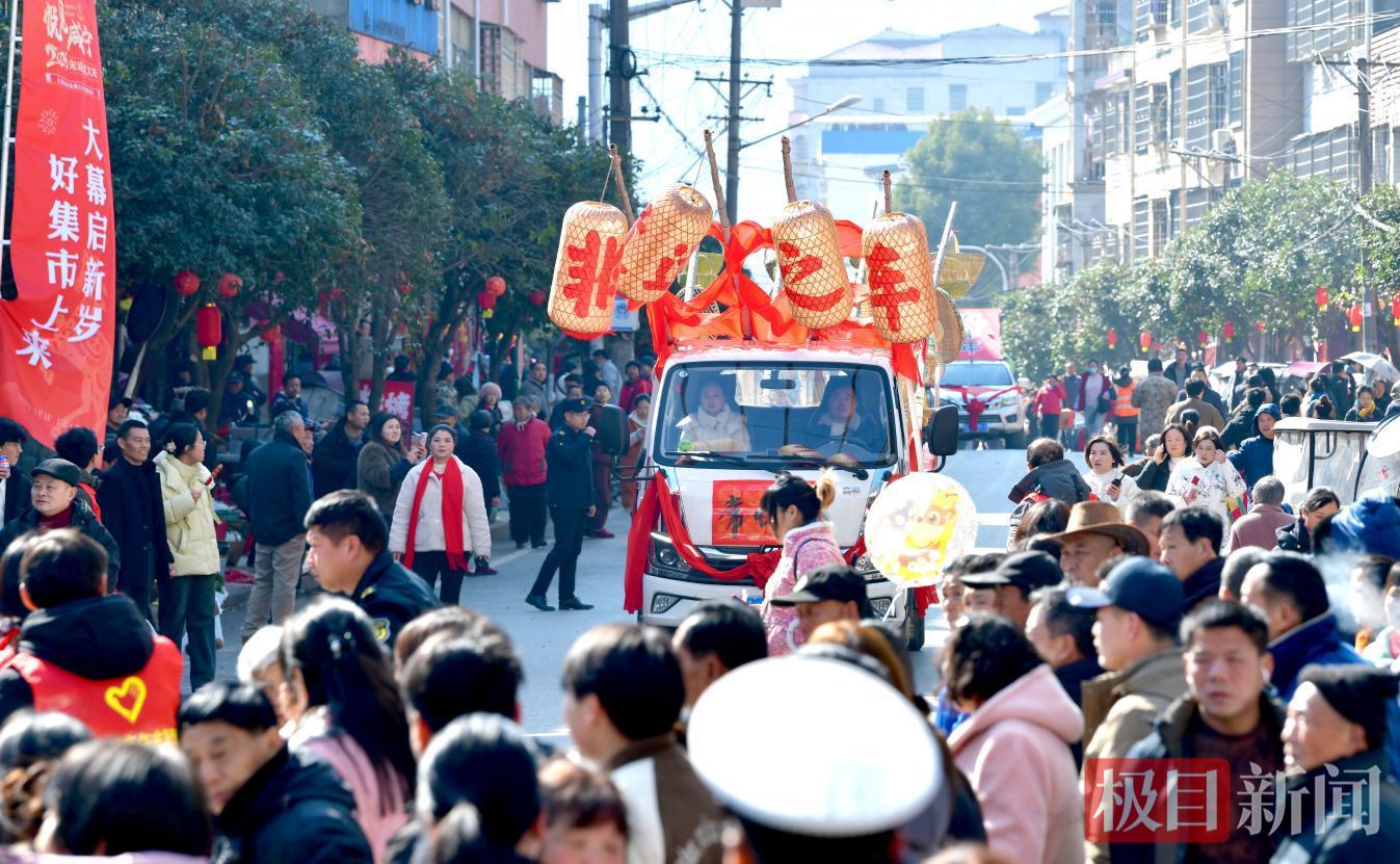 2026年2月8日,咸宁大幕乡常收街上人头攒动,一场以“赶集”为名、以“共富”为实的“悦见咸宁·2026来咸过大年”暨大幕乡欢欢喜喜过大年赶集活动火热开启。这场由咸宁市商务局支持推动、乡干部群众共同谋划落地的赶集,吸引了五千余名乡亲与归客。人们赶的不仅是年货,更是一场情感的回归与发展的探路。