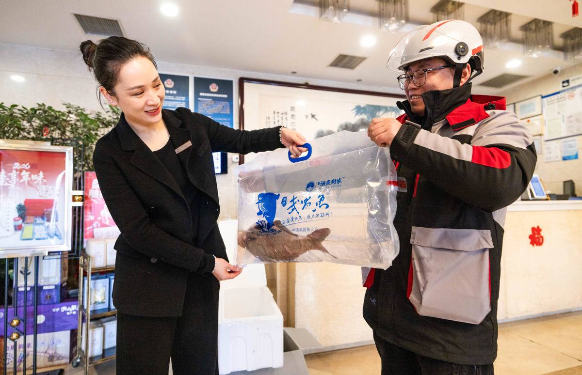 “现在是一鱼难求!”基地里,“活鱼到家”负责人孟辉的手机响个不停。他告诉记者,2025年,这个项目卖出了约300万斤活鱼,产值近2亿元。而支撑这份成绩的,是每斤超百元的“高品质吊水武昌鱼”,以及背后一套严苛的品控流程。