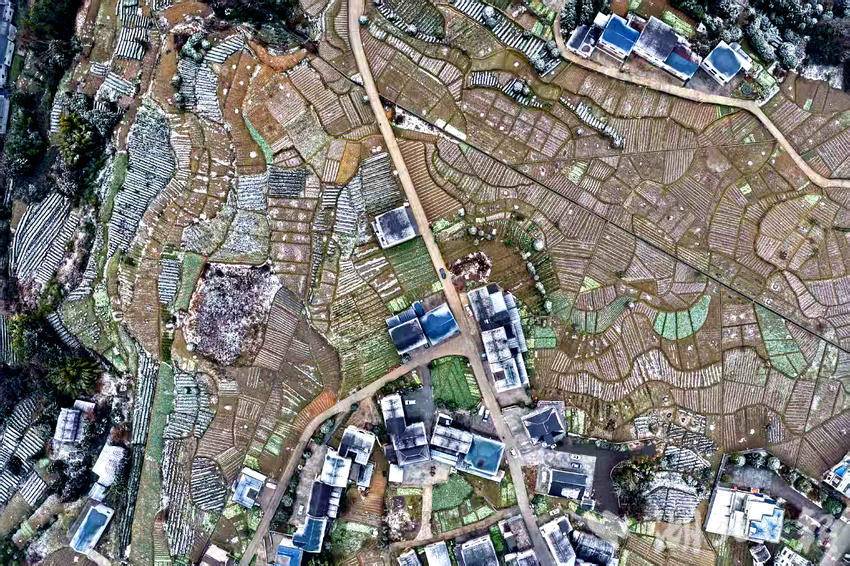 雪后的麂子渡村,既有北国雪景的苍茫,又不失南方乡村的秀美。连片的茶园与梯田在薄雪覆盖下若隐若现,蜿蜒的村路连接着烟火人家,静谧中蕴藏着生机。当地村民表示,这场春雪不仅带来了美景,也预示着新一年的丰收。