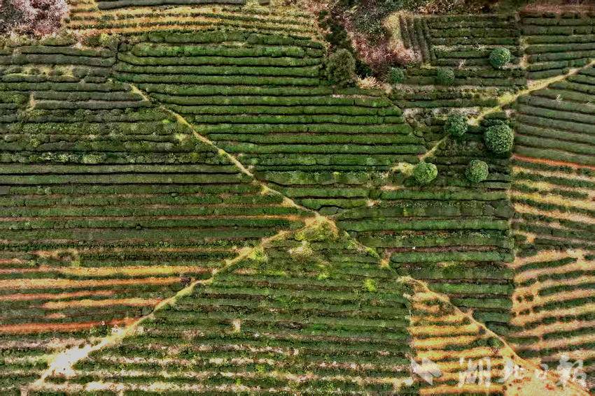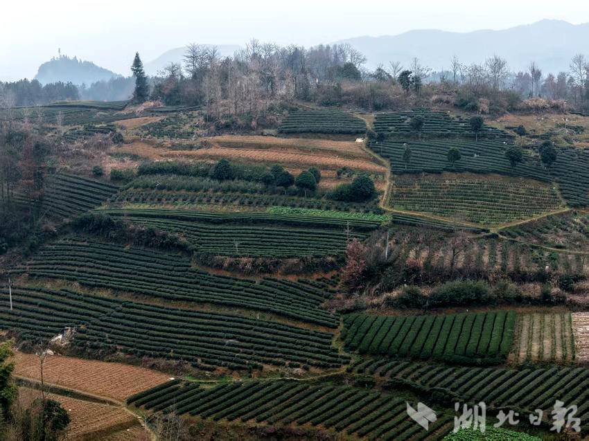 湖北日报客户端讯(通讯员施维、胡自丹、陈行锋)初春时节,恩施市柏杨坪镇麂子渡村大湾组的千亩茶园已悄然披上新绿。层叠的茶垄顺着山势起伏延伸,在薄雾中晕染成一片深浅交织的绿意,犹如大地谱写的诗行,勾勒出丘陵茶园独有的生机与韵律。