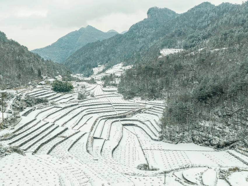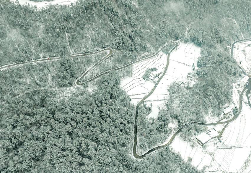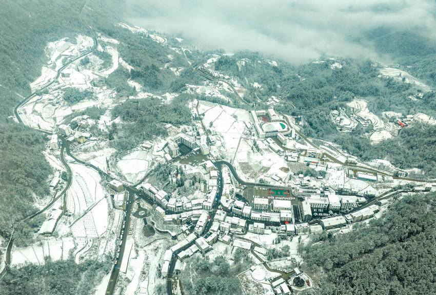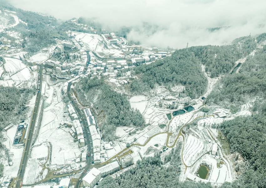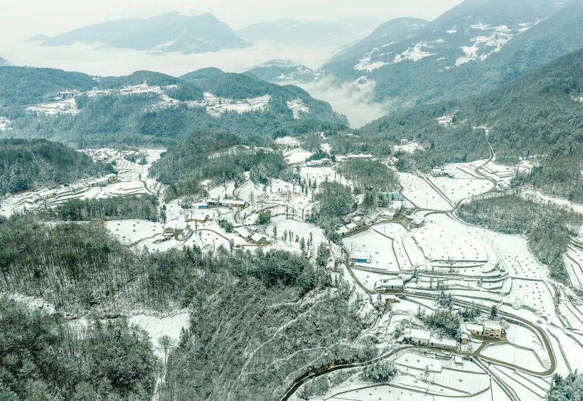 图为2月9日,湖北省秭归县磨坪乡,瑞雪覆盖美丽村庄(无人机照片)。