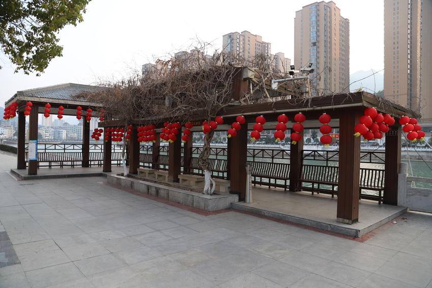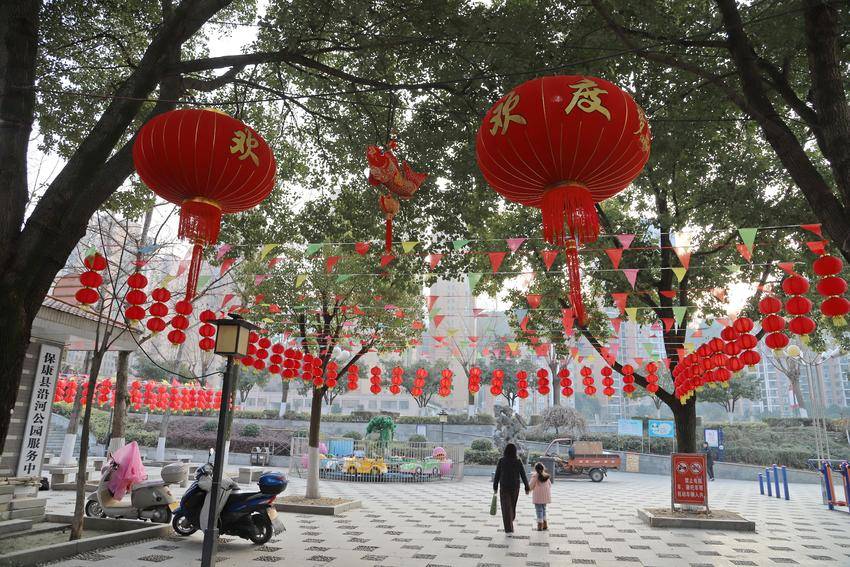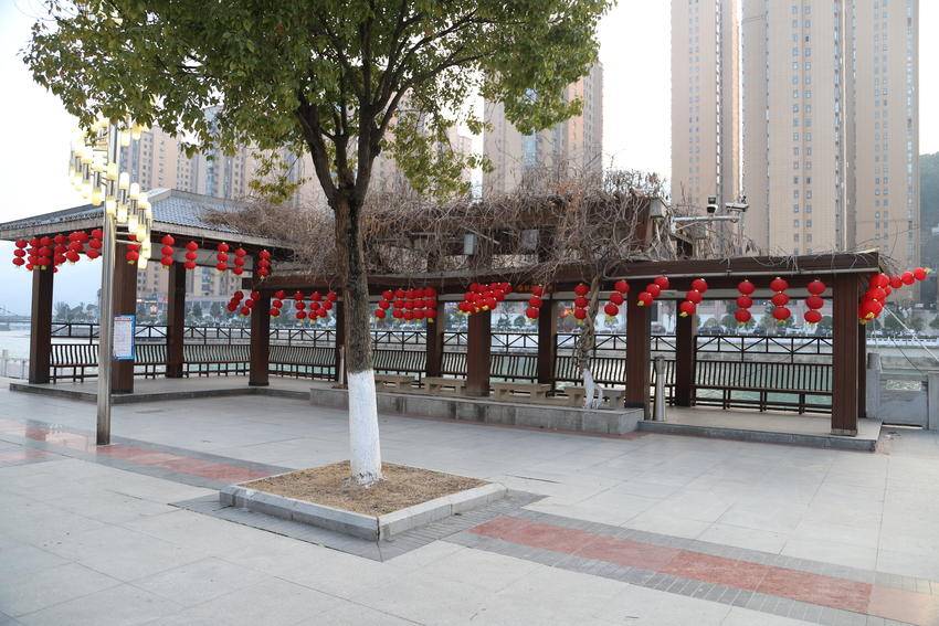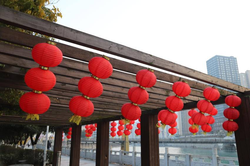 春节将至,年味渐浓。保康县沿河公园早已被一片喜庆的中国红所包裹。
