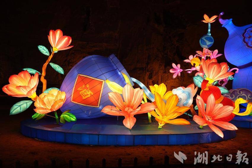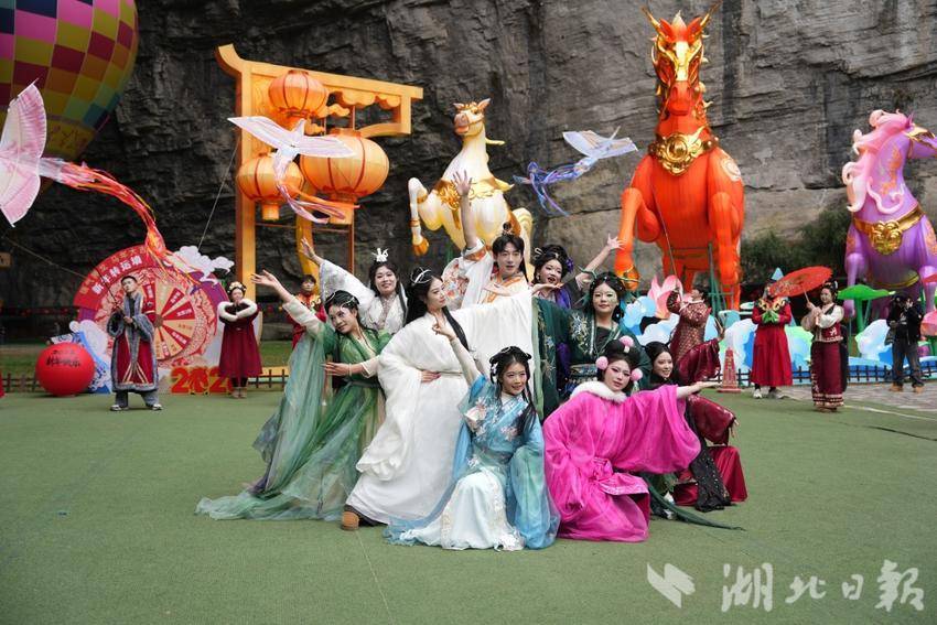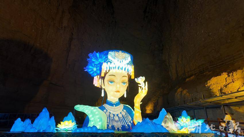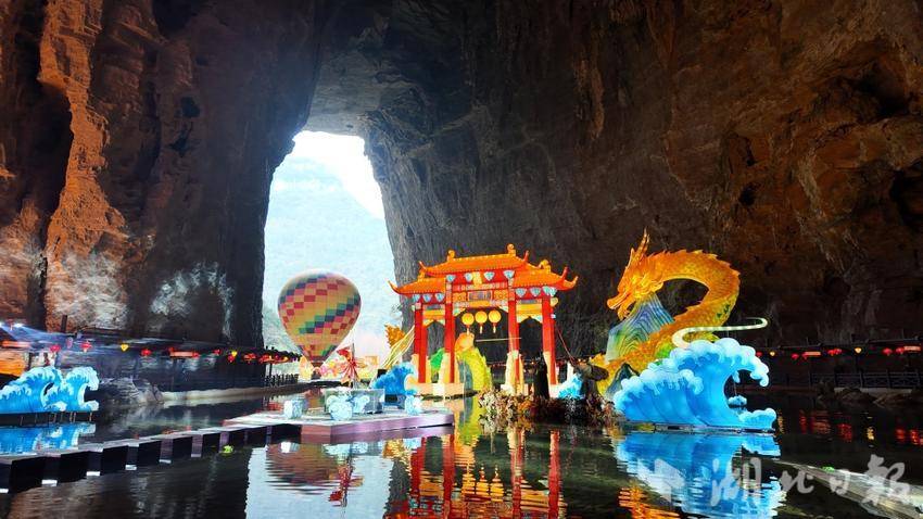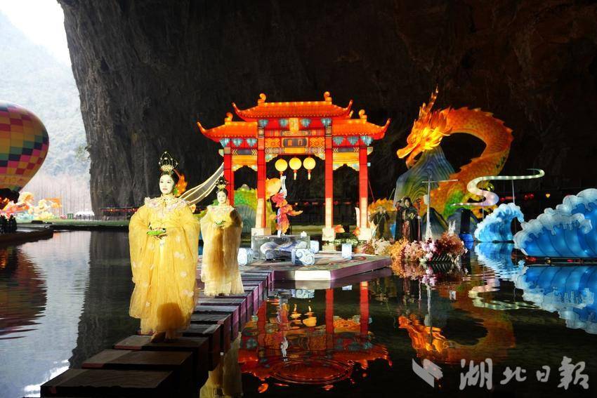 “不光能看灯,还能玩个痛快!”腾龙洞景区品牌策划部总监张芙蓉领着我们逛遍了展区,16个NPC互动点位藏在溶洞各处,龙王娶亲、天女散花的实景演出轮番上演,猜灯谜、投壶赢的“龙票”能直接抵现金换土家腊肉、合渣这些小吃,还能换河灯祈福。她说,即日起至2月14日,官方直播间有88元专属套票,“大门票、灯会、《夷水丽川》歌舞秀、激光秀等全包含,相当于一票解锁腾龙洞所有精华,全天候都能来赶这场洞穴年味。”