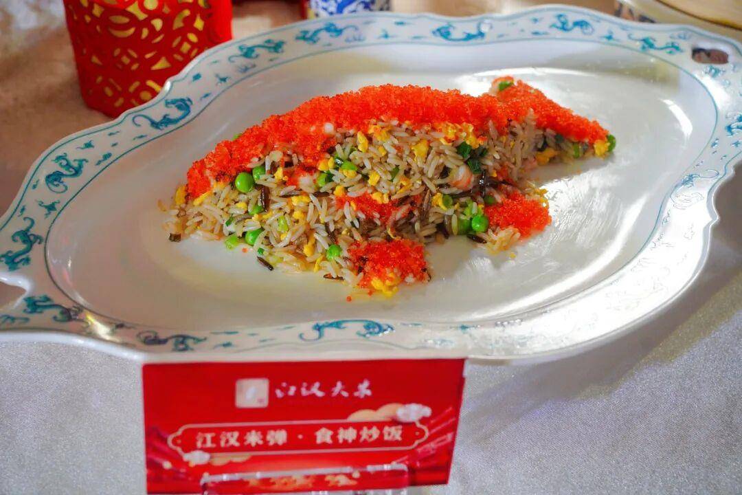 活动现场,一桌匠心独运的“江汉大米十二道风味”创意米宴惊艳亮相。从寓意团圆的传统名点“江汉米珠·团圆肉丸”,到巧妙融合湖北地标食材的“江汉米脆·金衣大虾”,再到还原粤式镬气的“江汉米弹·食神炒饭”,整席宴席以米为核心,演绎出煎、炸、蒸、煮、烩等多种烹饪可能,不仅征服了现场南北嘉宾的味蕾,更生动诠释了“鱼米之乡”丰饶物产所蕴含的无限创意与深厚饮食文化内涵。