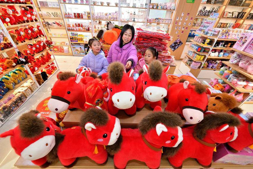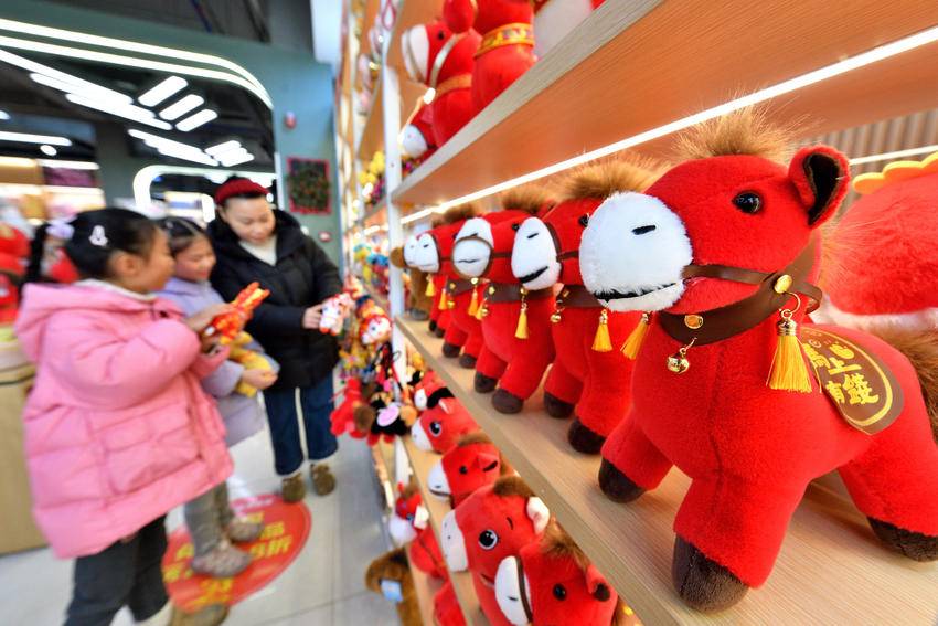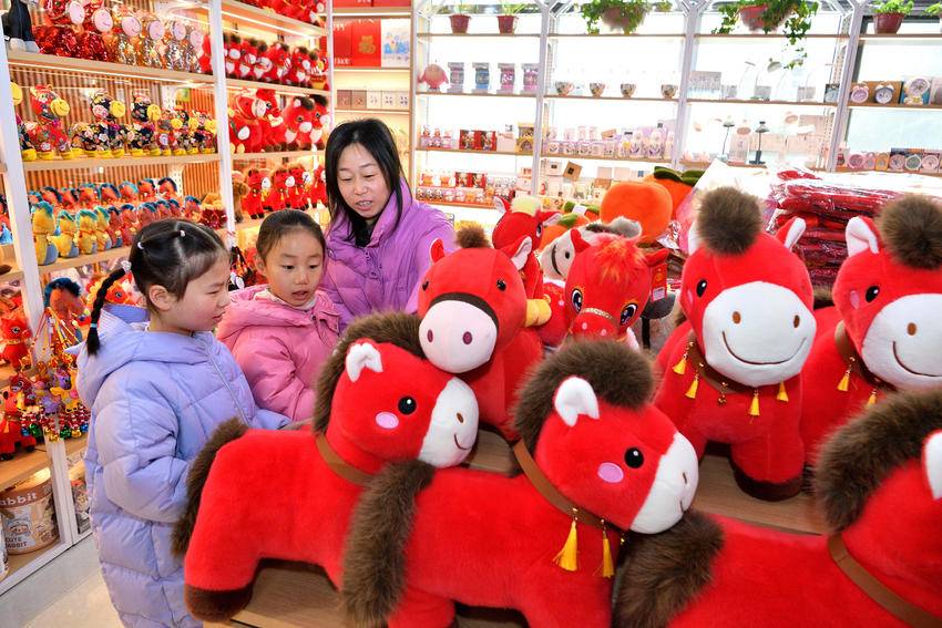 带有马年生肖元素的挂件、饰品、文创产品设计精巧,将传统工艺与现代审美有机融合,成为节日消费新热点。饰品店店主张全艳介绍,今年马年相关年货十分畅销,店铺提前从河南、湖南等地备足货源,除传统马年玩偶外,还推出国风马、钻石马等新品种,充分满足市民消费需求。
