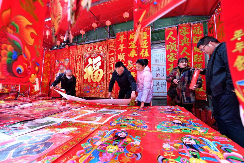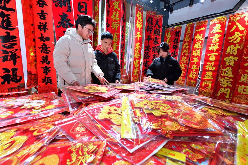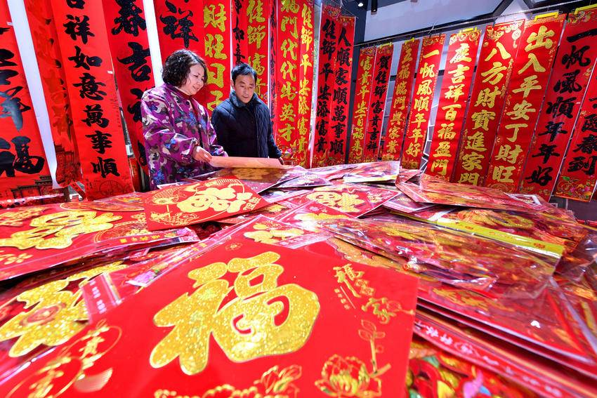 除了生肖饰品,春联、福字、窗花等经典节庆用品同样迎来销售高峰,烫金春联、创意立体“福”字等产品尤受青睐,这些承载着深厚传统文化的春节“标配”,传递着辞旧迎新、接福纳祥的美好意愿。