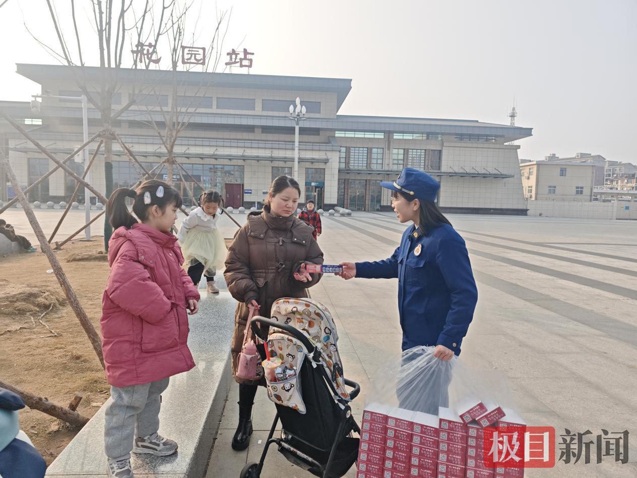 “春运路上人多行李多,打火机、酒精这类易燃物品请勿携带上车!充电宝也建议放在方便取用的地方,避免在包内长时间充电。”自2月初起,在湖北省孝感市的各火车站、高铁站的候车大厅内,一道道“火焰蓝”的身影活跃在旅客之中。他们耐心讲解、悉心叮嘱,将一份份特别的“平安礼”送到返乡旅客手中。