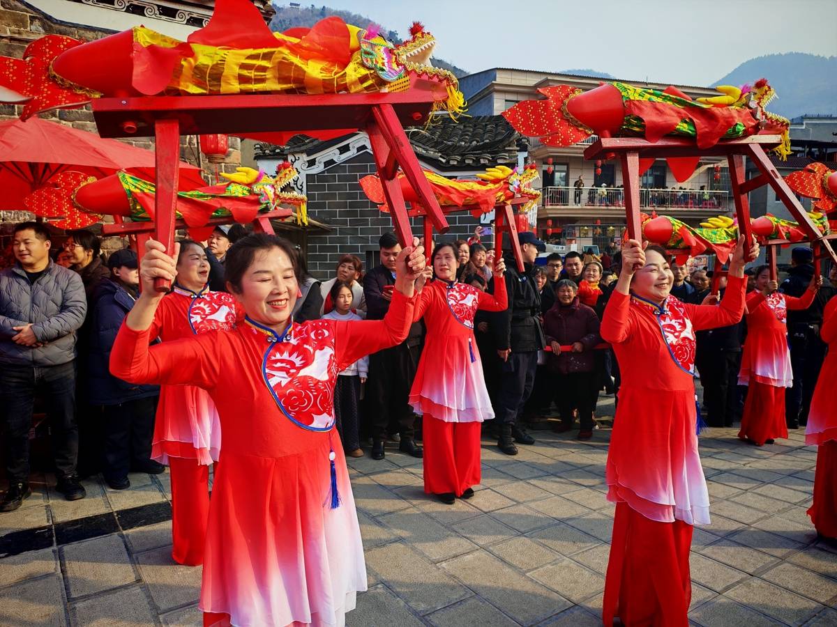 上冯村大树咖啡老板娘曹桂香暂时把生意交给店员打理,走上村晚舞台和机器人一起表演压轴歌舞《马上开心·跳起来》。曹桂香告诉湖北日报全媒记者:“台上的演员除了机器人外,都是我们村里的乡亲们,大家白天工作,晚上排练,就是想把我们的心意通过歌舞表达出来,欢迎全国游客来我们村里过年!”