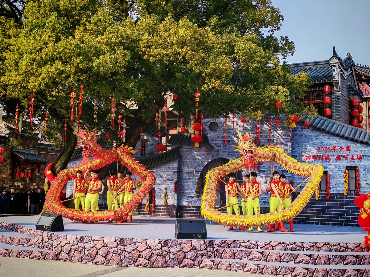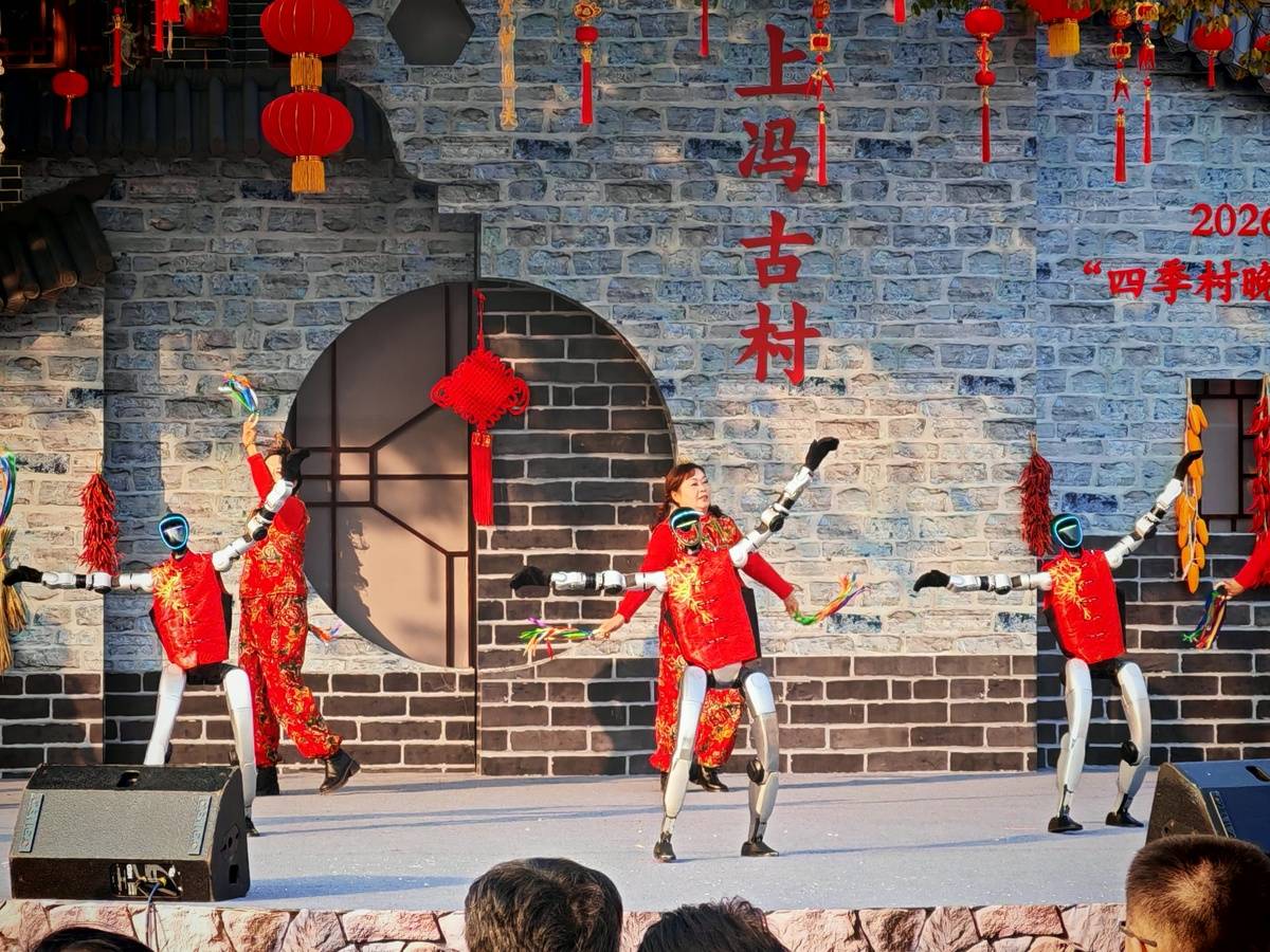 古树、石井、古街、古村,配上新潮的人形机器人混搭起舞是何种韵味?2月11日,腊月二十四,南方小年,大冶上冯古村喜气洋洋、人声鼎沸,2026年全国“四季村晚”春节主场活动暨“知音湖北”新春嘉年华在古村落热闹开场。