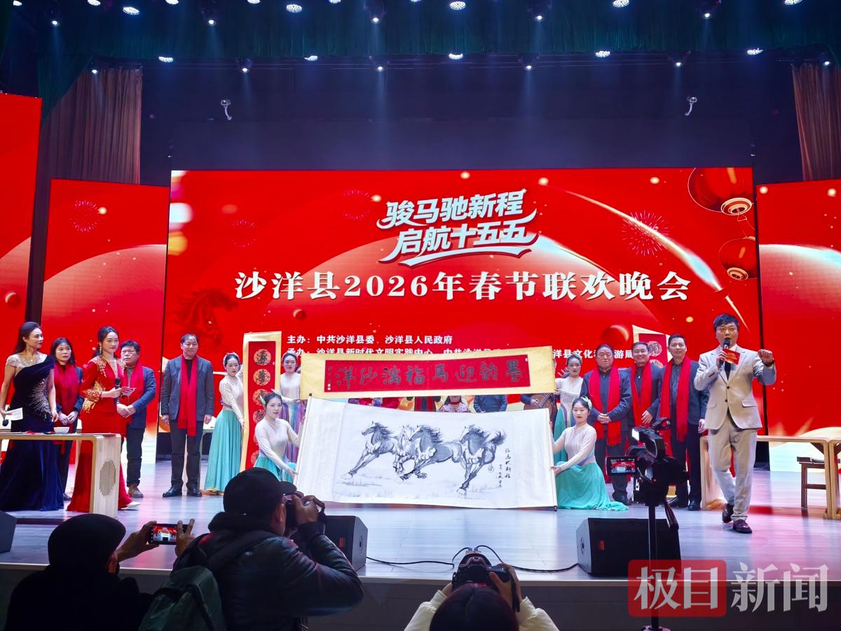 “希望大家以龙马精神昂扬奋进,锚定高质量发展首要任务,全力推动县域经济质效双升,携手共赴‘十五五’崭新征程,共同谱写中国式现代化沙洋新篇章。”沙洋县委副书记、县长李莉丽在晚会现场向各行各业的奋斗者、向所有关心支持沙洋发展的各界朋友致以最诚挚的节日问候和最美好的新春祝福。