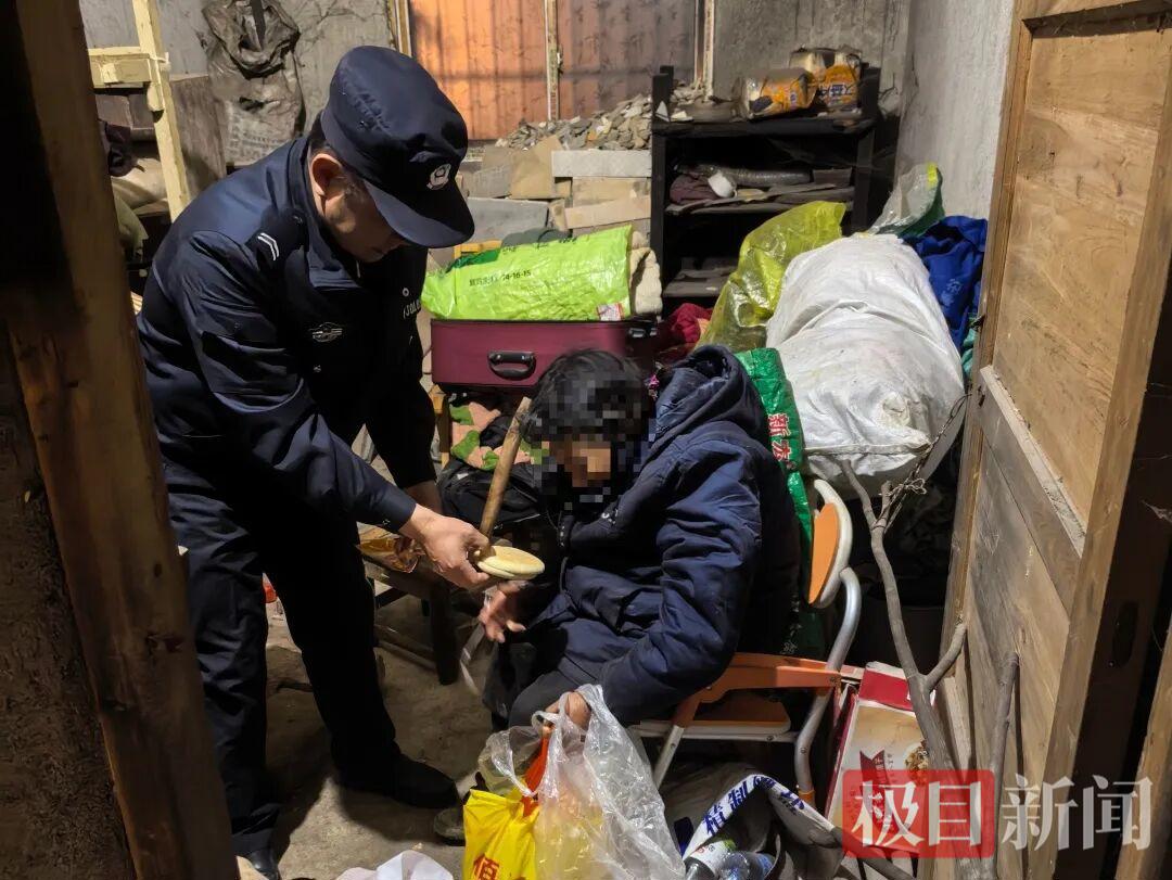 抵达现场后,民辅警借助警车灯光进行搜寻,很快在一处低矮屋檐下找到了老人。夜色深沉,路灯昏暗,寒风瑟瑟,老人蜷坐在角落,身体已被冻得发僵,双手紧抱胸前,眼神迷茫而惊慌。若不是附近居民及时报警,后果不堪设想。