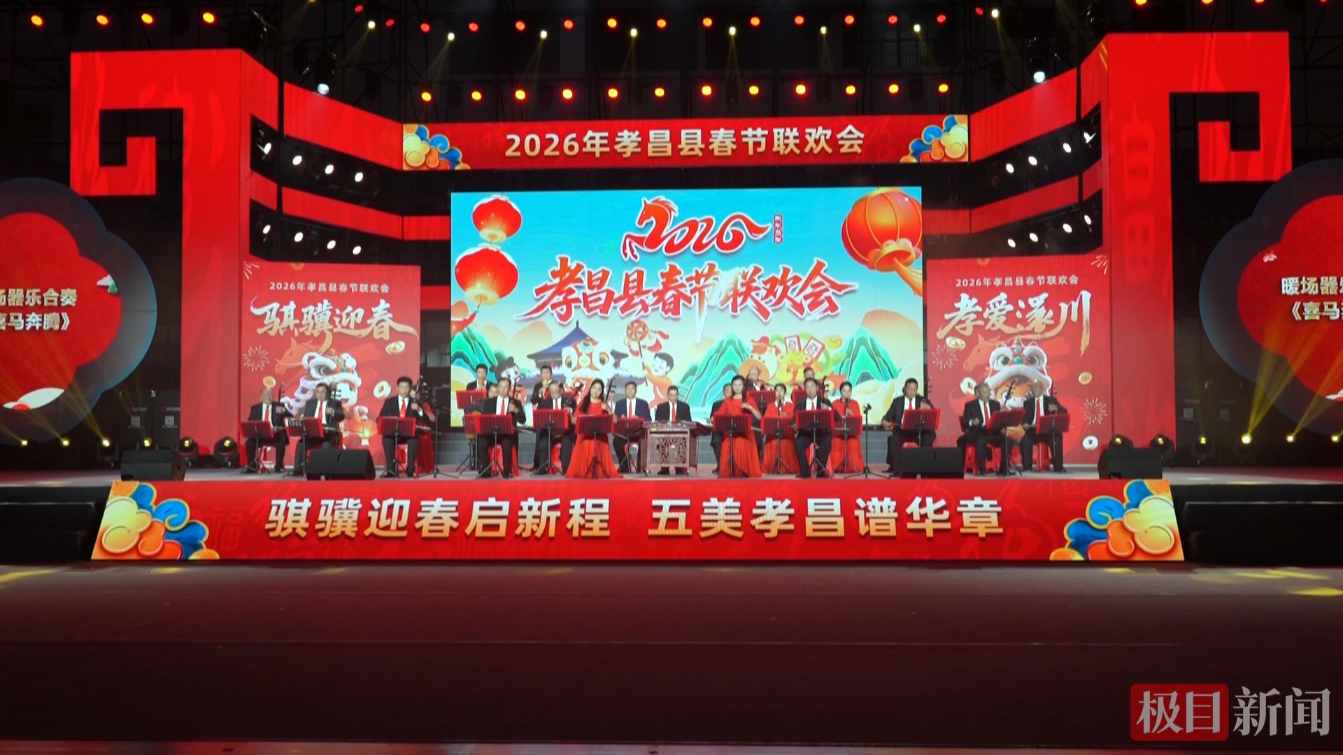 春涌澴川,骐骥腾跃;张灯结彩,年味正浓。2月10日,“骐骥迎春 孝爱澴川”2026年孝昌县春节联欢会在县体育馆温情上演。晚会以孝为魂、以乡为根,既生动展现孝昌乡村振兴、民生改善的崭新面貌,也向海内外孝昌乡亲传递新春祝福,凝聚起全县上下奋进新征程的磅礴力量。