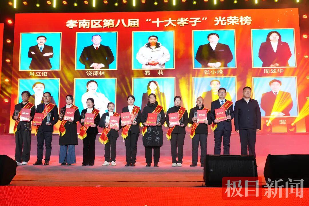 晚会现场隆重举行第八届“十大孝子”颁奖仪式,表彰孝老爱亲、崇德向善的先进典型,以榜样力量引领文明新风,让孝德文化在澴川大地代代相传、生生不息,擦亮孝南“孝文化”核心品牌,筑牢精神文明根基。