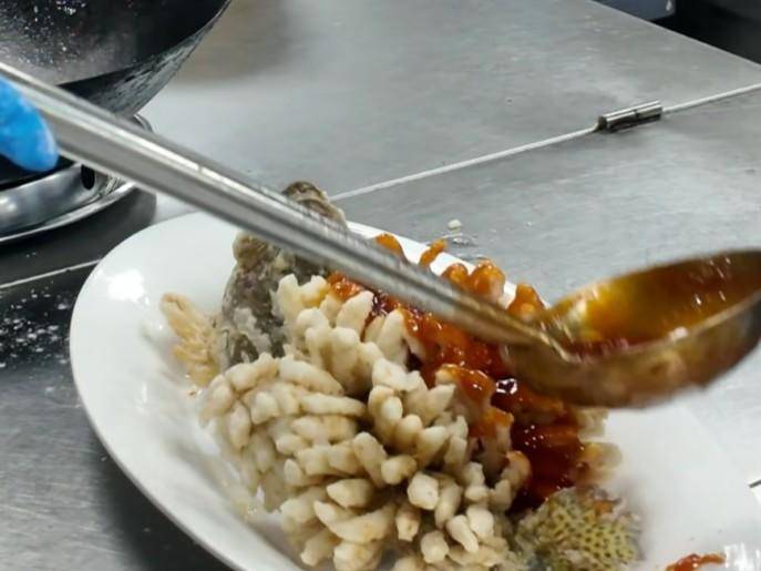 “今天83桌,大家打起精神。”厨师长左许惠守在灶边,松鼠桂鱼在他手里淋汁亮色,香气四溢。这是他坚守岗位的又一个除夕。