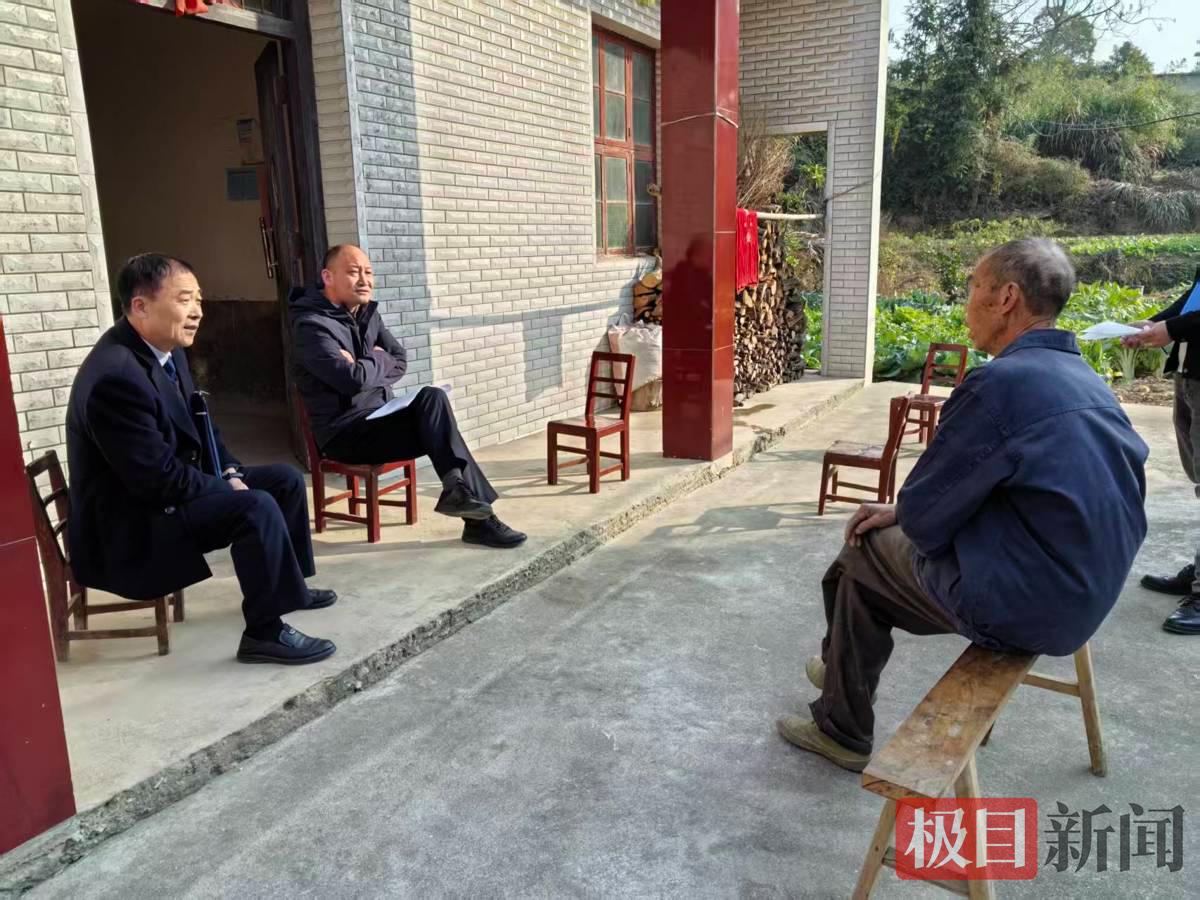 倪胜林(左一)在村民家中了解情况