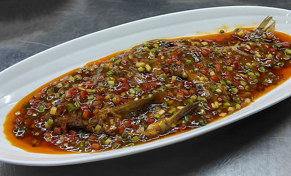 无鱼不成席,在湖北人的年饭桌上,一定有一道完整的鱼。经典楚菜中,葱烧武昌鱼是团年饭中的常客,汤汁浓香馥郁,鱼肉入口鲜香嫩滑,是年饭桌上不可多得的佳肴。在湖锦酒楼,每年能销售葱烧武昌鱼超百万条。