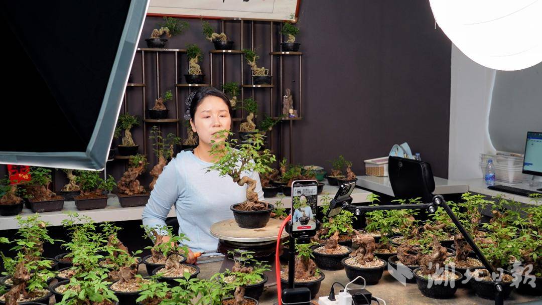 从最初几千盆的线下零散销售,到2025年试水抖音、视频号直播带货,短短一年时间,基地的小微盆景规模已达15万盆,年销售额突破70万元,实现了从“遇冷”到“爆红”的逆袭。