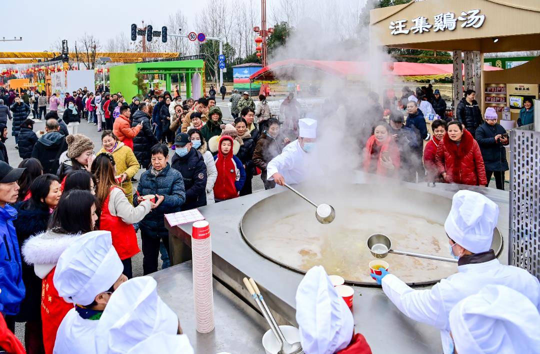 武汉市新洲区举办2026年新春美味市集,展示非遗、老字号、文创产品、本土农作物等,联合汪集鸡汤推出“万人同喝一锅汤”活动。