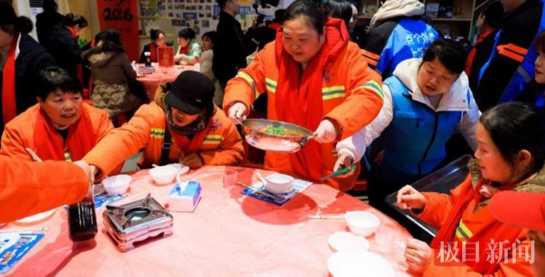 淘宝闪购外卖员王朋因当天订单较多,在社区吃完饭很快回到工作岗位。“新春订单旺,服务不打烊。”他说,感谢社区组织的活动,很暖心,临近年关,他们也将保障好市民的需求。