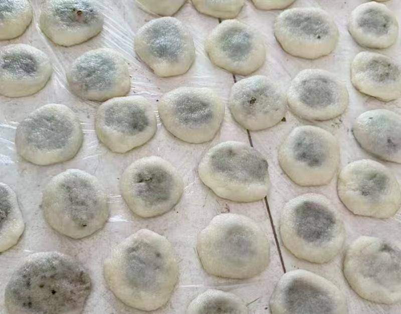 男人出力打糍粑,女人巧手做糍粑,各司其职、其乐融融。刚打好的热糍粑柔软烫手,妇女们手上抹油,趁热揪团,再把事先准备好的绿豆馅包进去,用模具压扁,制作孝感特色绿豆糍粑。清香绿豆沙裹入软糯米团,成型后可煎可炸,是孝南人最爱的年味小吃。其余的糍粑冷却一天让它冷却变硬成型,再把整张糍粑切成长条,再冷却让两边变得干燥,最后才能切成长方形块状。切成块的糍粑装入上满水的桶里,可以保存很长时间。日后或煮,或炸,或烤,或者送客,都可以。