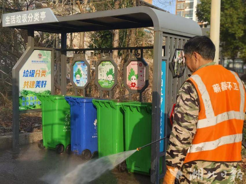 垃圾桶、果皮箱、垃圾中转站等环卫设施,是城市不可或缺的“公共家具”,其洁净程度直接影响城市市容观感和市民生活体验。蕲春环卫处重点开展环卫设施“洗尘焕新”专项行动,采用“人工+机械”协同作业模式,对城区主次干道、背街小巷的果皮箱、垃圾桶进行全面清洗、消毒、擦拭,高压水枪冲洗顽固污渍,专用清洁剂祛除异味,确保每一处设施内外洁净、无污无臭。