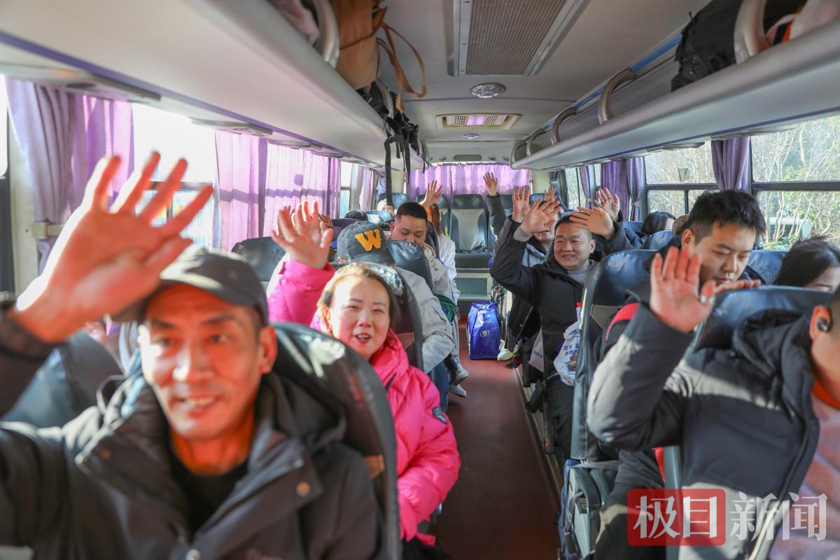 2月12日下午6点15分,新闻记者在岳阳东站广场看到,贴着“支点建设催奋进 返乡创业正当时”醒目标语的最后一辆大巴车,满载着石首的返乡人员缓缓驶离,车厢内顿时飘出老乡们幸福的欢笑声。