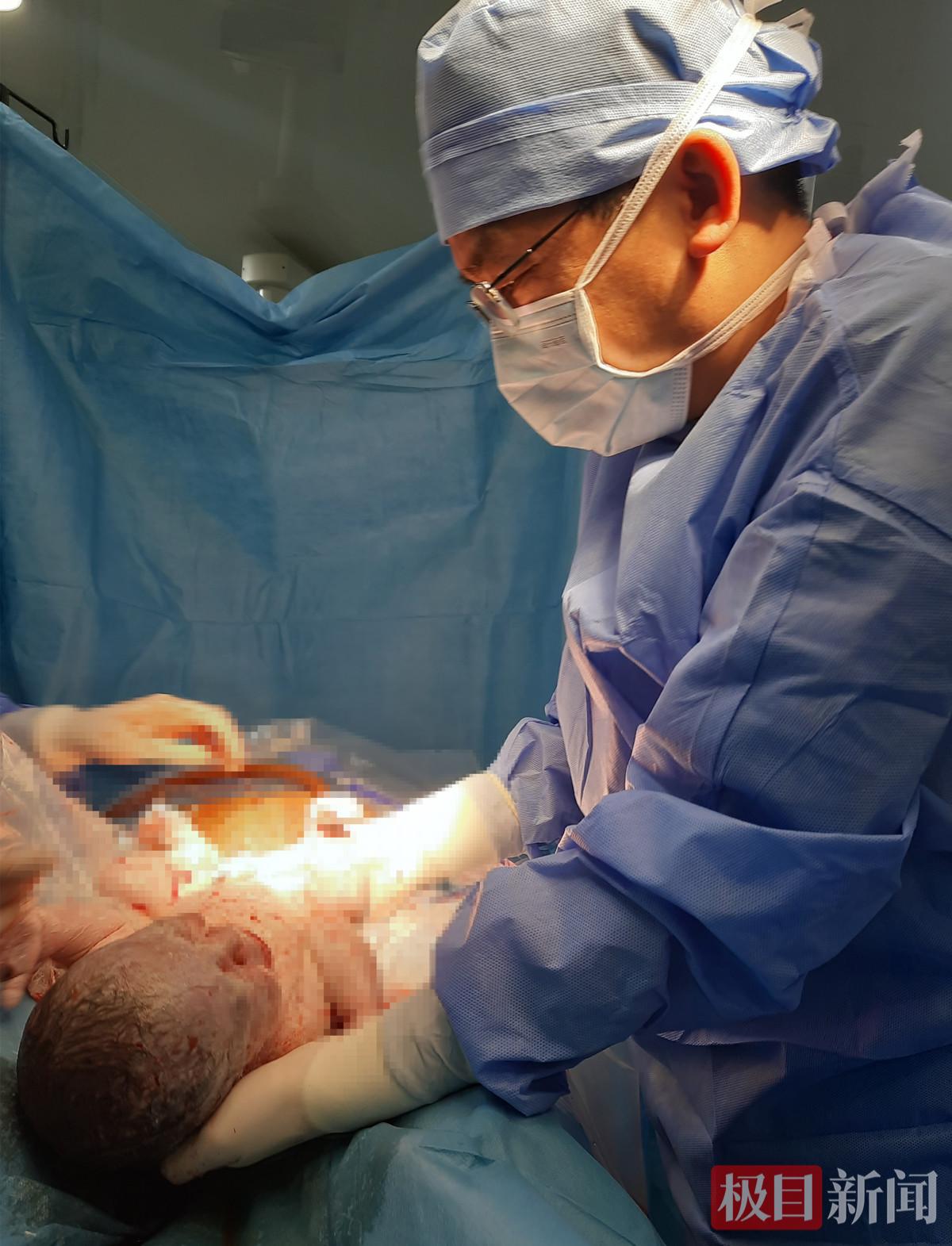 没有犹豫的时间。消毒、定位、穿刺……曹雅军的麻醉手法沉稳流畅。麻醉起效后,主刀医生的手术刀迅速划下,4分钟后,一阵响亮的婴儿啼哭划破手术间的紧张空气,所有人都松了口气。