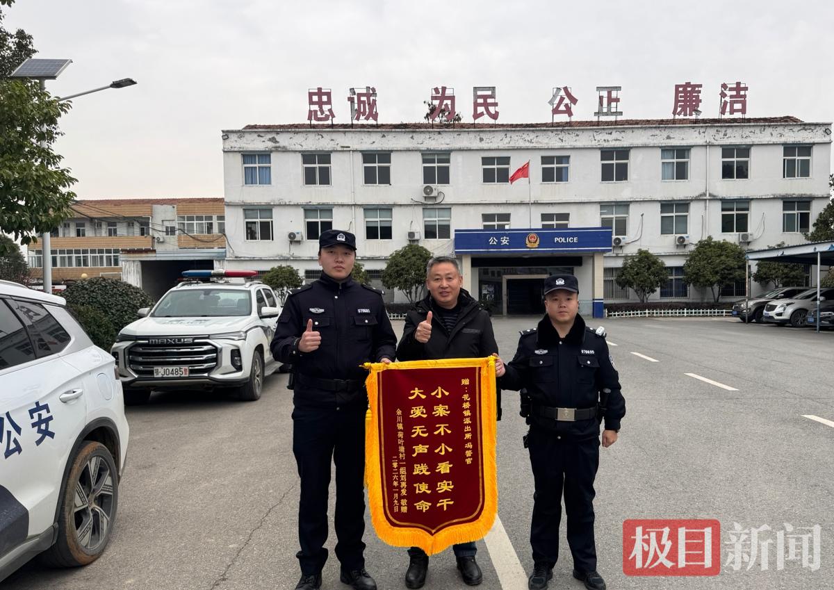 这面锦旗,是他专程从一千多公里外的东莞带回老家,只为亲手送给帮其母亲追回养老钱的民警。