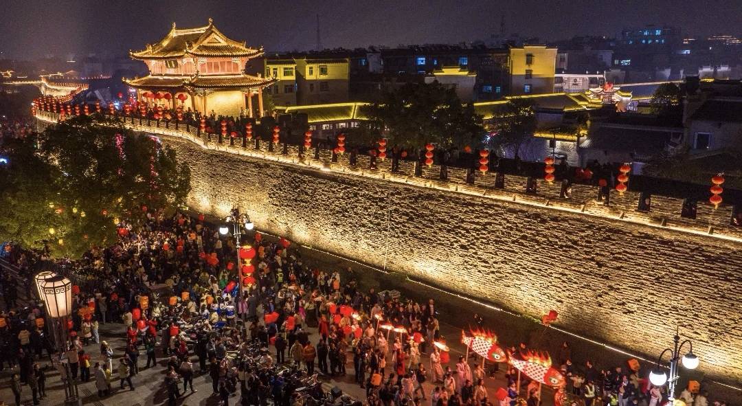 襄阳古城“千灯临汉 万户迎春”新春盛会现场。(省文旅厅供图)