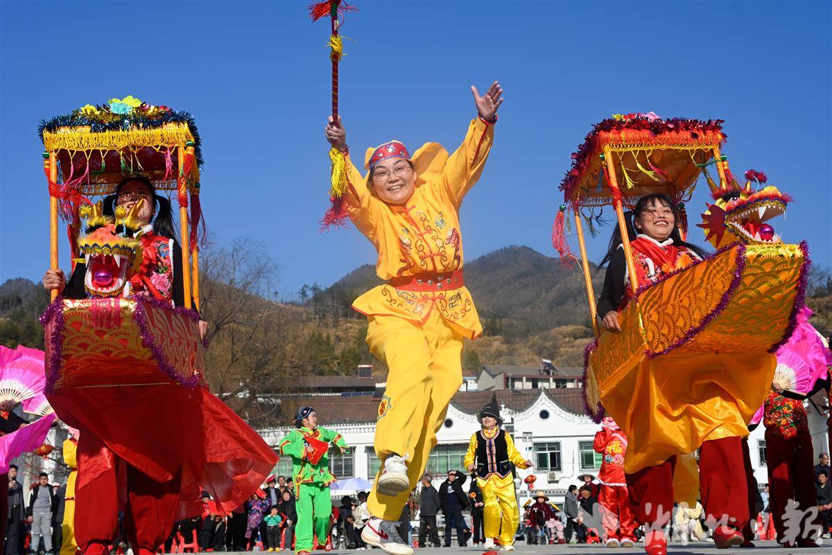 英山县温泉镇民俗表演喜迎新春。(视界网 王江 摄)