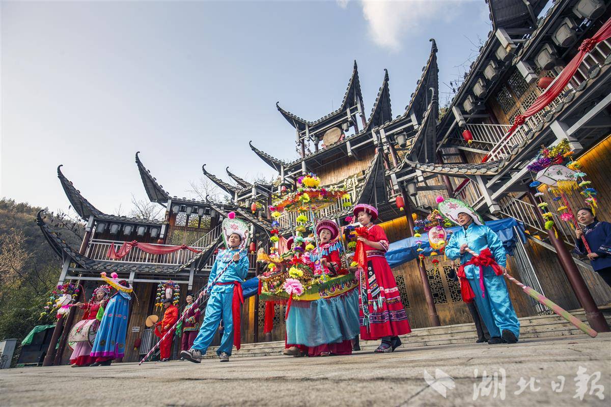 湖北恩施自治州利川市龙船水乡景区,国家级非遗《利川灯歌》表演惊艳全场。(视界网 张光陆 摄)