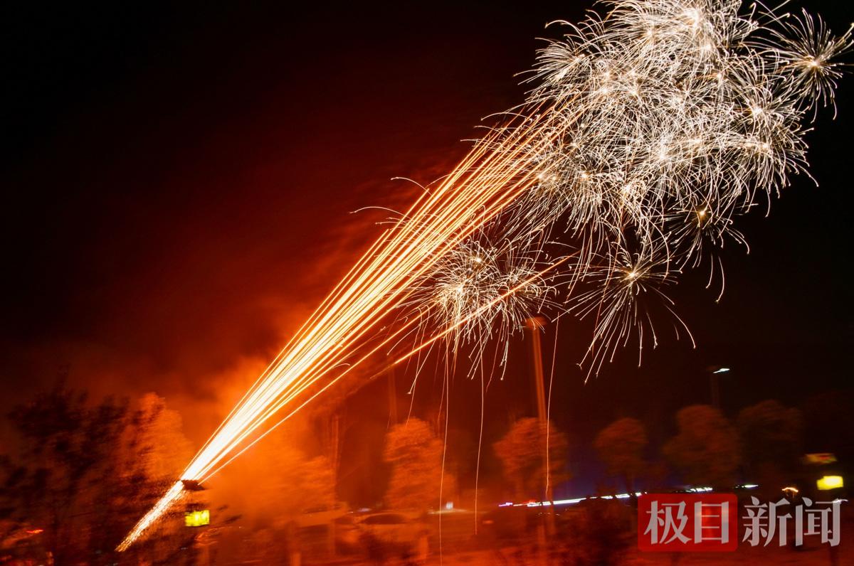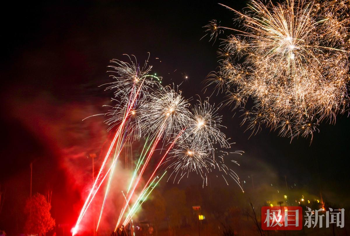 图为2月16日,大年三十除夕夜,城区市民和村民燃放礼花时的情景。
