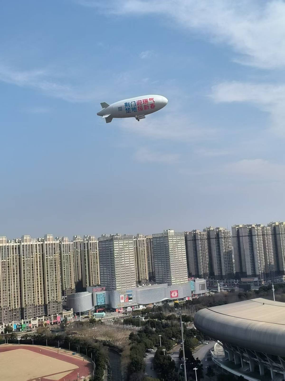 春节期间,AS700载人飞艇还将视天气情况,在荆门城区和县市区巡游,继续为市民送去新春祝福。