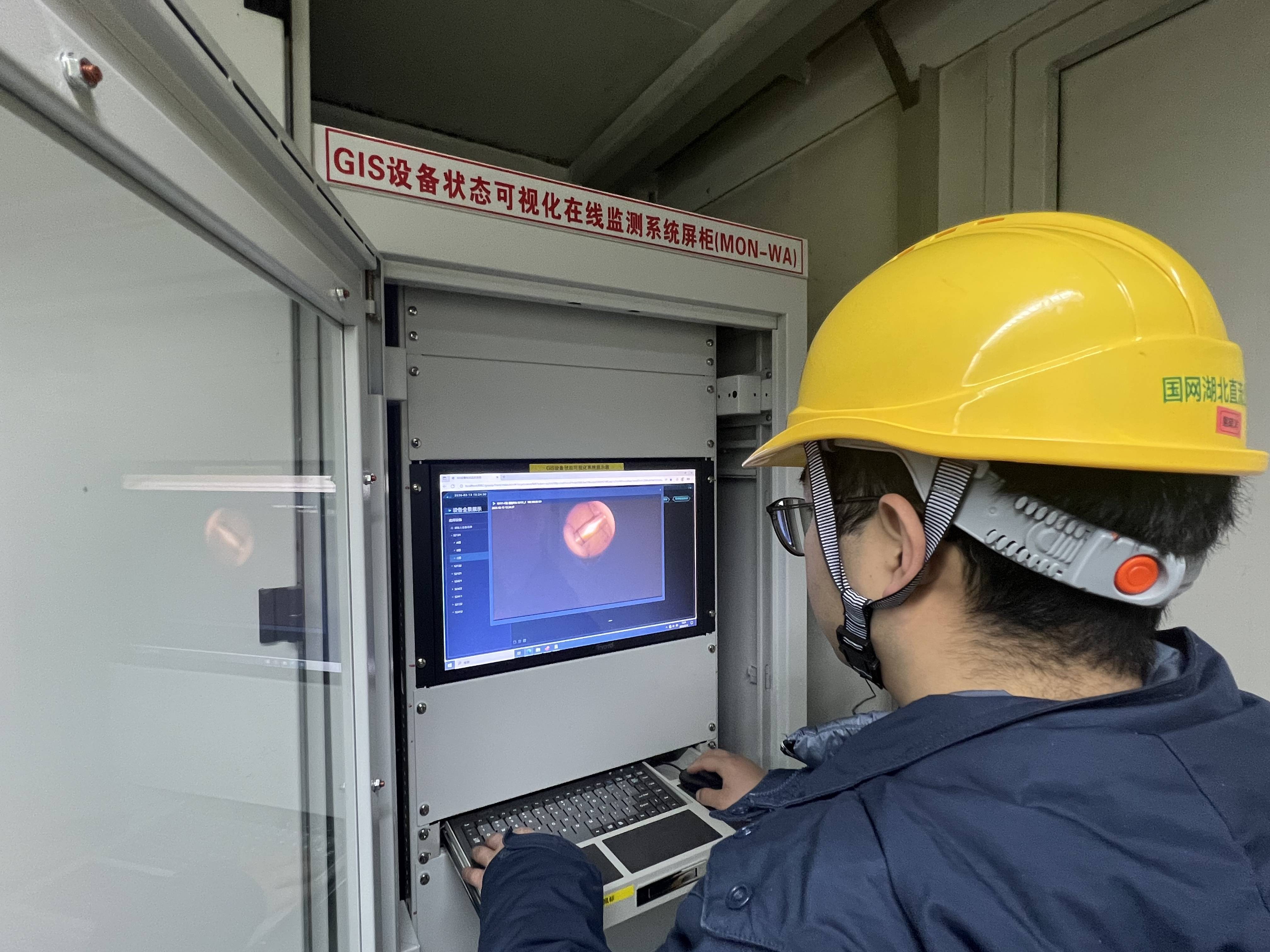 2月15日,±500千伏江陵换流站运维人员易琼洋正在利用GIS设备状态可视化在线监测系统检查设备状态